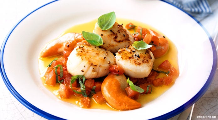 A tasty seafood recipe for the summer prepared with scallops in a garlicky tomato sauce. It's easy to make and delicious.