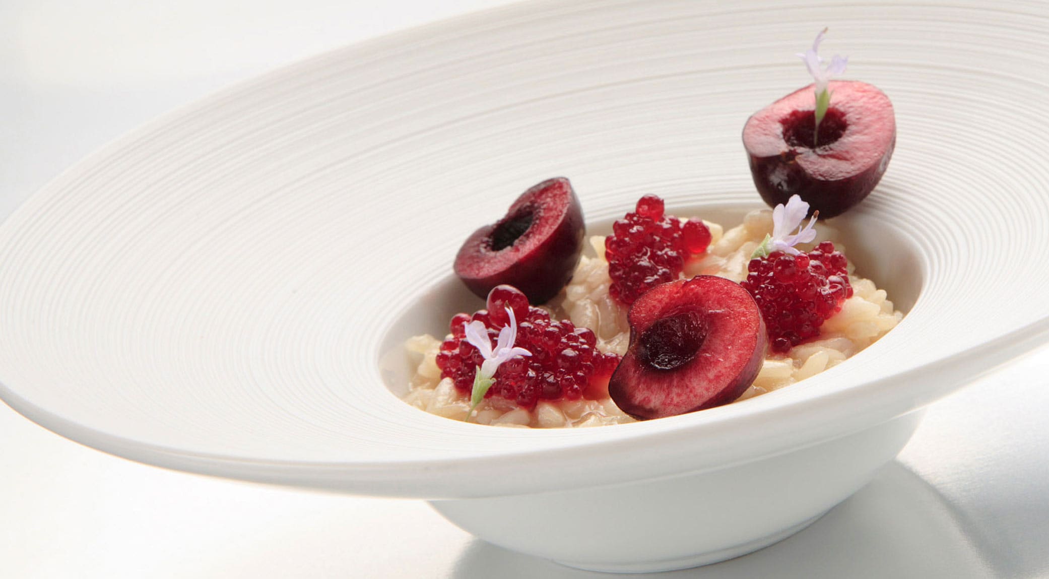 Unique sous vide cooking recipe by the famous Spanish chef Quique Dacosta, to prepare a rice, eel and cherry dish rich and complex in taste